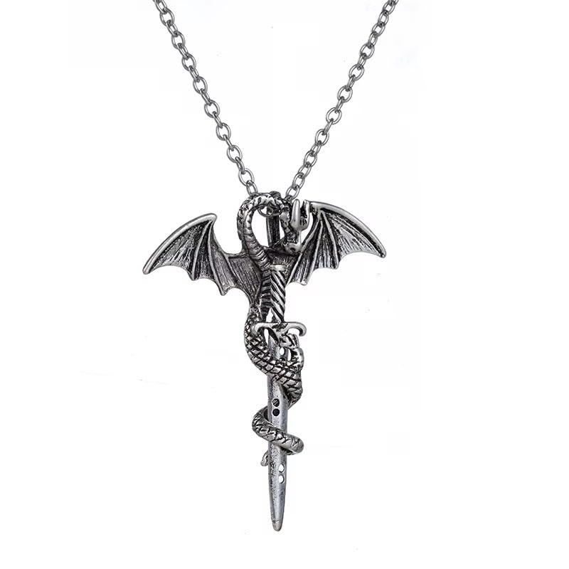 Generic - سلسلة بتعليقة بتصميم التنين مصنوعة من خليط معدني من الزنك بلمسة فضية وذهبية عتيقة ترمز للصداقة والجمال الخالد للرجال والشباب