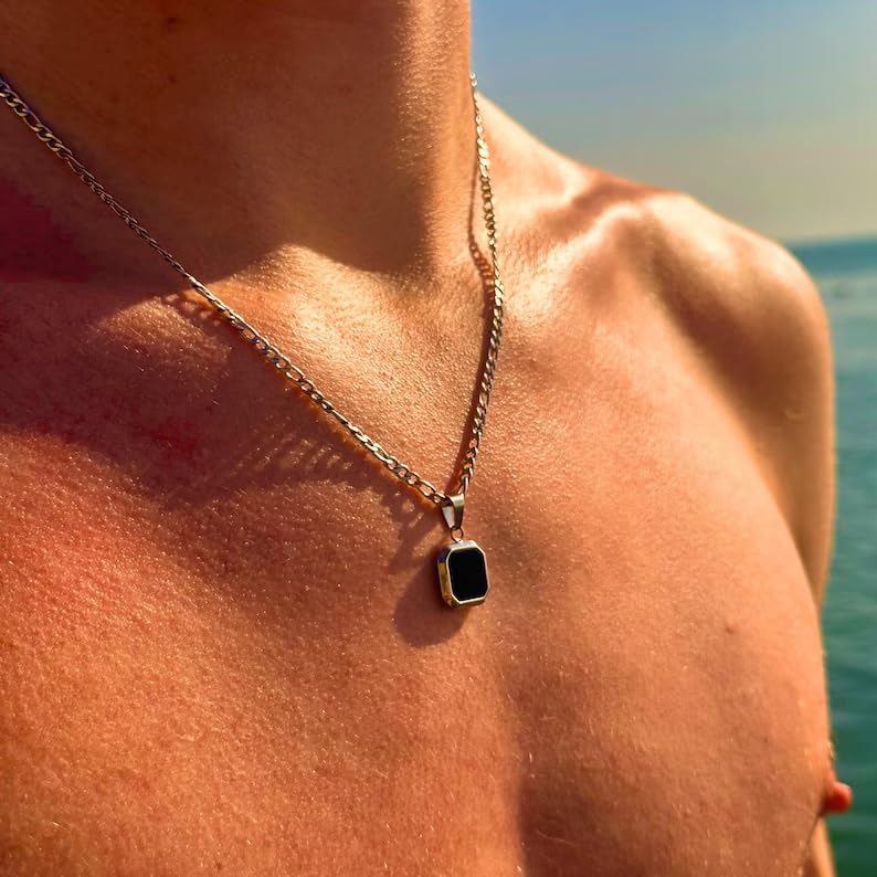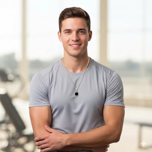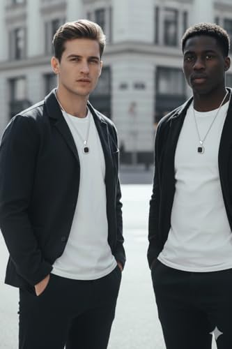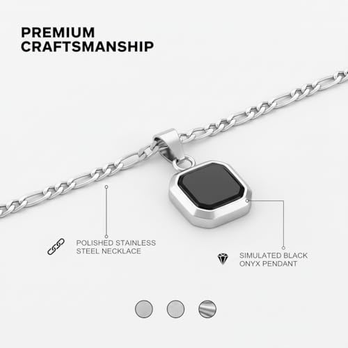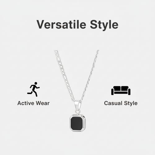 LDKRZ - عقد بقلادة من الستانلس ستيل بلون اسود مقاس 14 × 14 ملم للرجال والنساء والرجال مناسب كهدية لعيد الميلاد السادس عشر بطول 16-22 انش