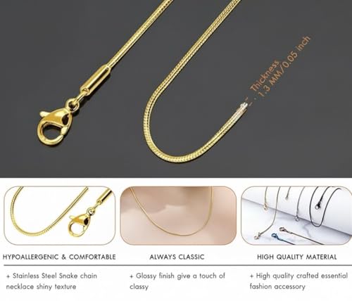 Generic - قلادة للرجال والنساء ، بسلسلة شكل ثعبان 1.2 ملم من الستانلس ستيل، مقاس 16-28 بوصة