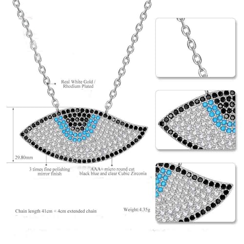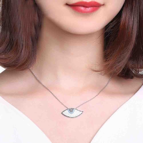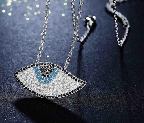 Generic - عقد بتصميم عين الحسد للنساء - مطلي بالروديوم والذهب الابيض