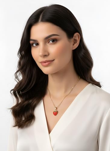 Generic - قلادة على شكل فاكهة ثلاثية الابعاد على شكل فراولة حمراء ومينا وفراولة خضراء لطيفة على شكل فاكهة حمراء لطيفة واعياد الميلاد والكريسماس والعطلات الصيفية، هدايا عصرية للزوجة، عيد الحب، ستانلس ستيل مطلي