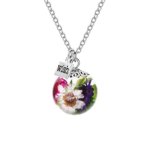 Other - قلادة زجاجية على شكل نجمة صغيرة مجففة - هذه الزهرة حقيقية وطبيعية, خليط معدني, زجاج، للنساء