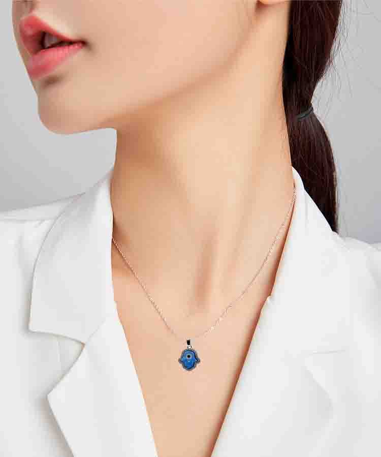 عقد يد همسة مع عين الحسد اوبال أزرق