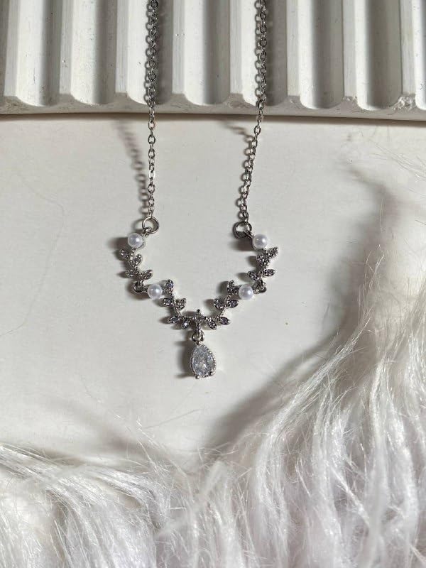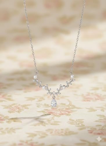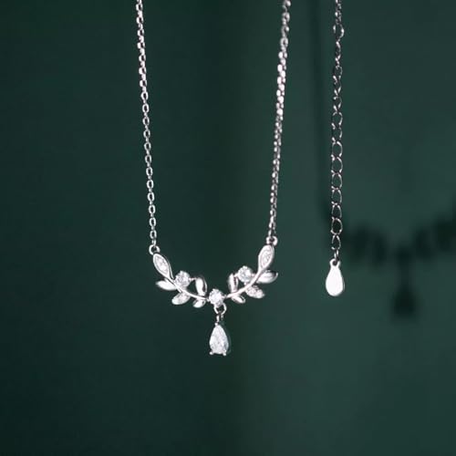 Generic - عقد بقلادة على شكل فرع على شكل قطرة ماء للنساء، هدية زفاف، مجوهرات راقية، عقد الصداقة والزفاف والكريسماس للنساء
