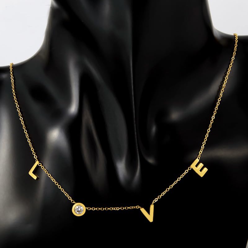 Generic - عقد بحروف الحب للنساء والفتيات المراهقات - ستانلس ستيل مطلي بالذهب