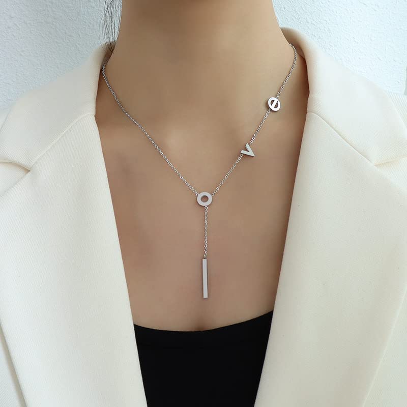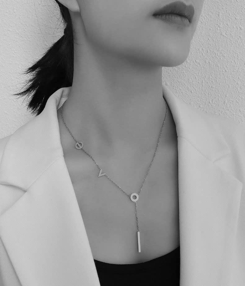 generic - سلسلة عصرية من الستانلس ستيل بتصميم حروف Love كورية - مطلية بالذهب الابيض عيار 18 قيراط, 45، للنساء