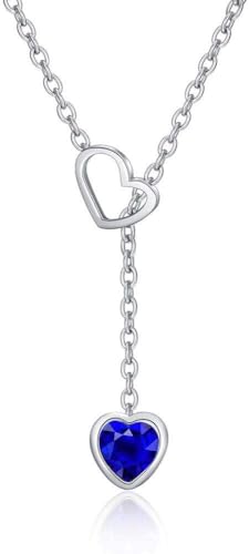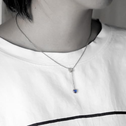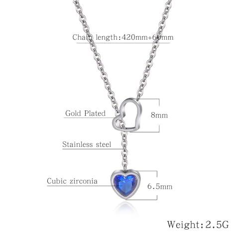 Generic - عقد بتصميم قلب مفتوح من الستانلس ستيل مزين بحجر زركونيا مكعب ازرق مطلي بالذهب للنساء