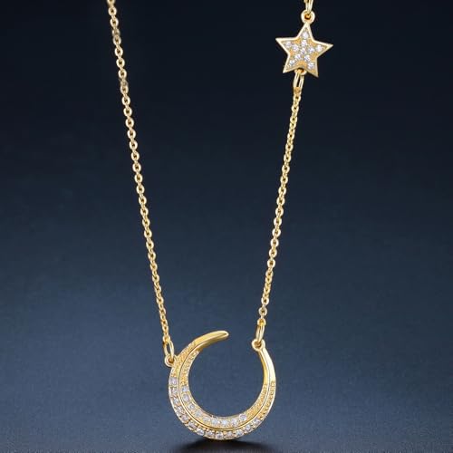 Generic - عقد على شكل نجمة وقمر وعيد الميلاد الحب الام للنساء للصديقة - مطلي بالنحاس بلون ذهبي