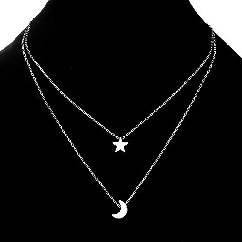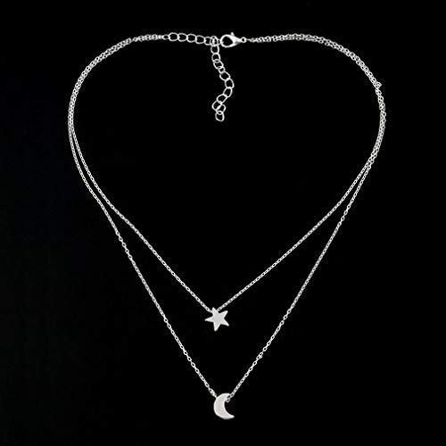 Other - عقد بطبقتين من النجوم والقمر - فضي مقلم، للأنثى