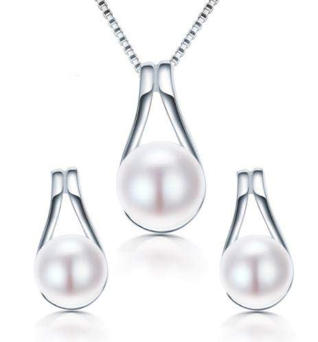 Other - قلادة مع اقراط للنساء من لؤلؤ المياه العذبه والفضه 925، متعدد الألوان