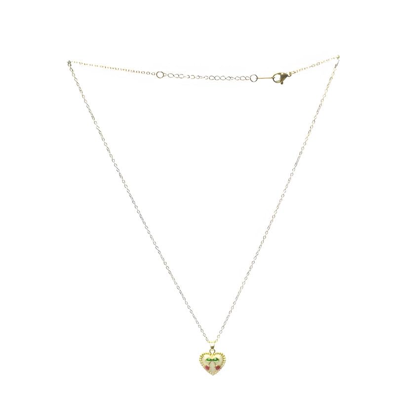 Generic - عقد بتصميم قلب وكرز للبنات - متعدد الالوان
