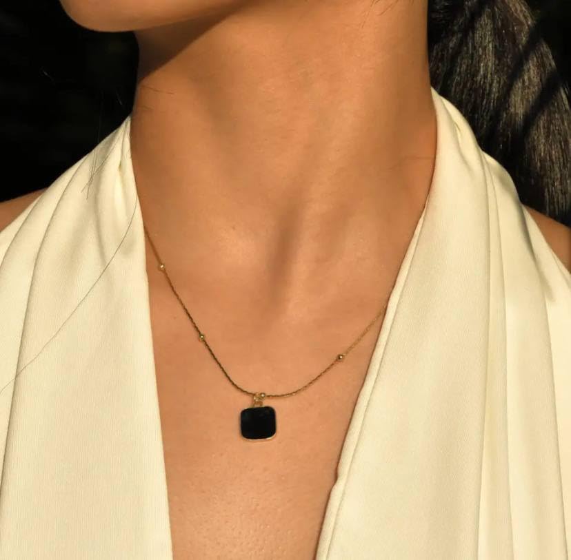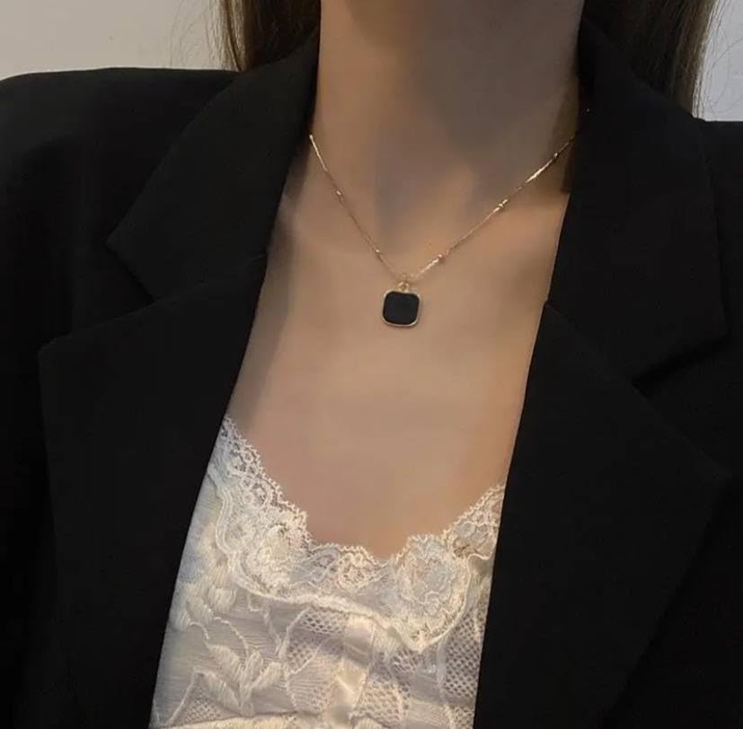 Generic - قلائد سوداء رائعة بتصميم مربع بسيط، سلاسل شوكر عصرية للنساء، مجوهرات هدايا الحفلات
