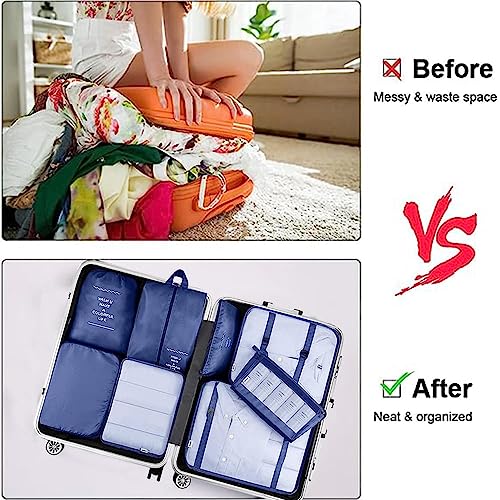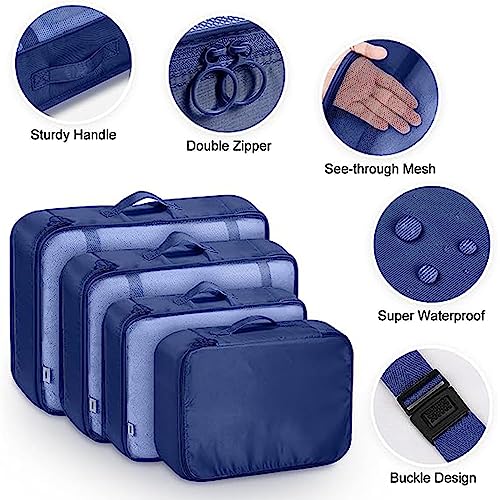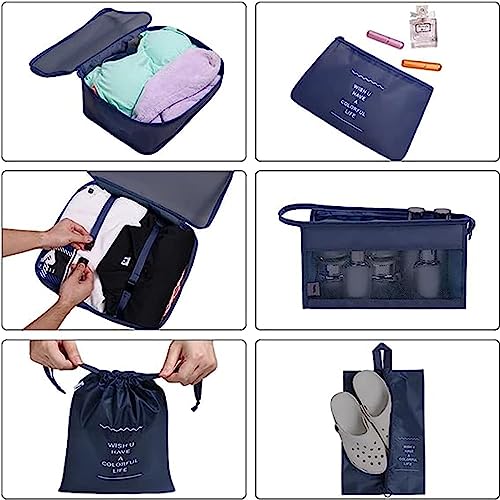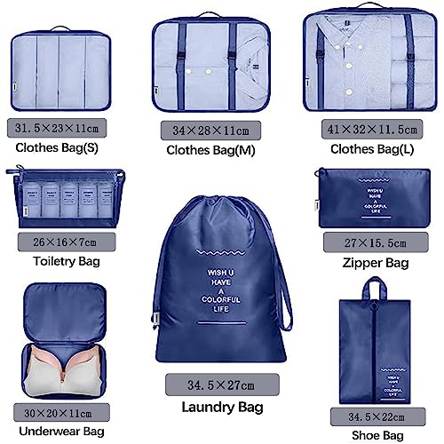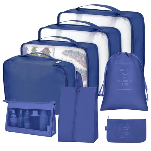Necomi - أكياس مكعبة لتخزين الملابس داخل شنط السفر من نيكومي، منظم أمتعة السفر، أكياس لتخزين الملابس والأحذية وأدوات الزينة والملابس الداخلية، مجموعة من 8 قطع، (أزرق غامق)، قماش