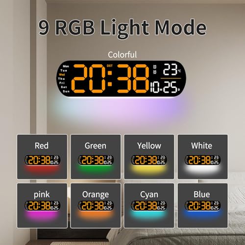 - [إضاءة جو رائعة]: تحتوي ساعة الحائط الخاصة بنا على إضاءة جو رائعة بما يكفي يمكن أن تتكيف مع مختلف الأجواء. إضاءة الجو هذه مناسبة لمختلف الأجواء، سواء في المنزل أو المكتب أو الترفيه. ملاحظة: بدون قابس، يرجى استخدام منفذ USB أو محول 5 فولت/1 أمبير و5 فولت/2 أمبير فقط للتوصيل. المحول مطلوب للحفاظ على عمل الساعة بشكل صحيح.