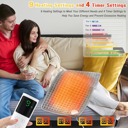 Necomi - مخدة تدفئة لتخفيف آلام الظهر، 9 مستويات تسخين و4 خيارات للمؤقت، وسادة حرارية سريعة لتخفيف تيبس العضلات والتقلصات والرقبة والبطن والكتف من نيكومي، 30.48 سم × 60.96 سم