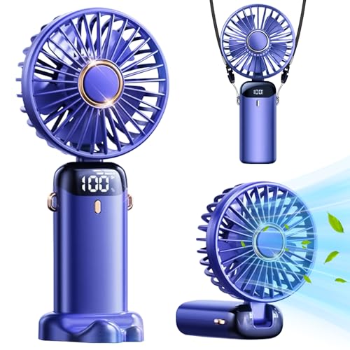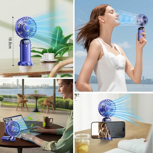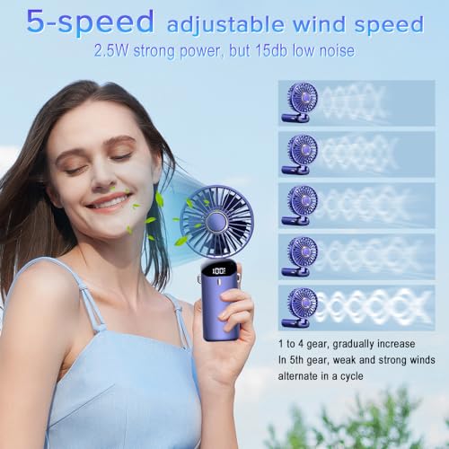Necomi - مروحة محمولة باليد تعمل بالبطارية مع قاعدة، 5 ساعات، شاشة رقمية بإضاءة ليد، 5 سرعات، قابلة للتعديل 90°، مروحة صغيرة قابلة لإعادة الشحن للاستخدام الداخلي والخارجي والمكتب والسفر من نيكومي، أرجواني