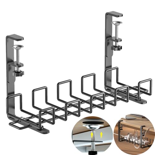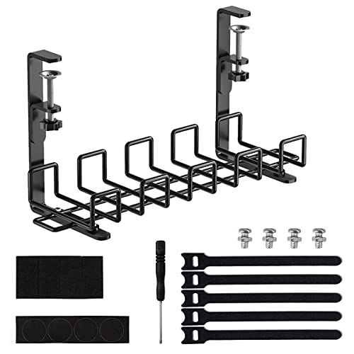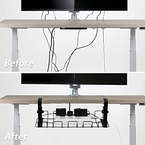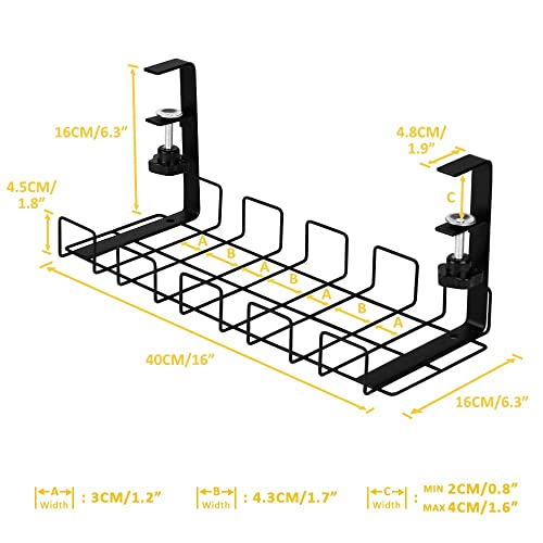 Necomi - رف تنظيم الكابلات يوضع أسفل المكتب من نيكومي منظم أسلاك اسفل بطول 40 سم مزود بنظام تثبيت بمشبك لتنظيم الأسلاك حامل كابلات المعدني للطاولات والمكاتب والمطابخ لا حاجة إلى حفر ثقوب أسود