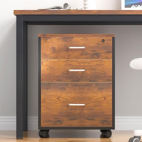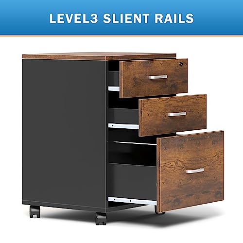 Need - نيد خزانة ملفات خشبية متحركة بـ3 ادراج مع قفل، خزانة ملفات دوارة للخطابات / مقاس ايه 4 للمكتب المنزلي، بني ريفي ND-10CZLXFC04FG