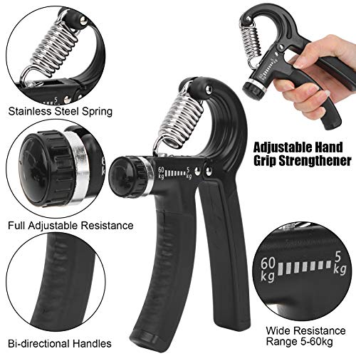 needlid - طقم تمارين تقوية قبضة اليد، لاداة تمارين اليد (5 قطع) تتضمن اداة تمارين تقوية قبضة اليد، وتمارين الاصبع، حلقة مقبض تمارين تقوية اليد الخ
