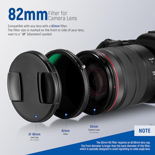 - 【التوافق】متوافق مع جميع العدسات بمقاس سن لولبي 82 ملم. يرجى التأكد من حجم سن العدسة اللولبي قبل الشراء. يتم وضع علامة على حجم السن اللولبي على الجزء الأمامي أو الجانب من عدستك، بجوار رمز "Ф" (القطر).