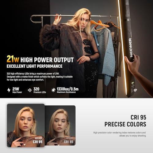 NEEWER - نيوير انبوب اضاءة LED محمول باليد 21 واط 35.5 انش/90 سم، اضاءة فيديو بولي يوريثين حراري قابلة للنفخ ثنائية اللون، 2700-6500 كلفن 1300Lx/0.5 متر، بطارية CRI95 2500mAh، لتسجيل الفيديو والتصوير