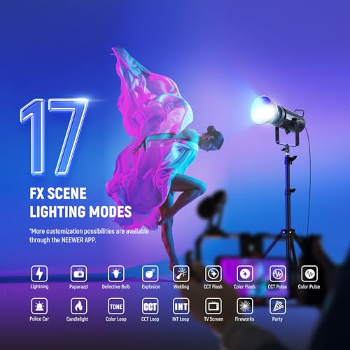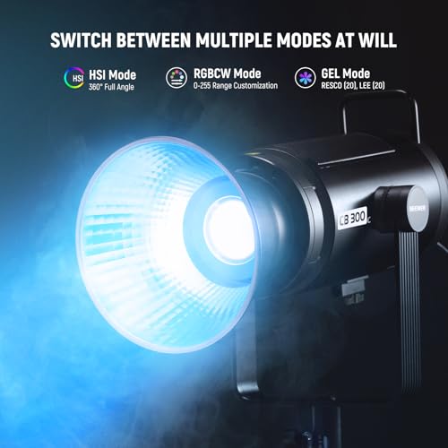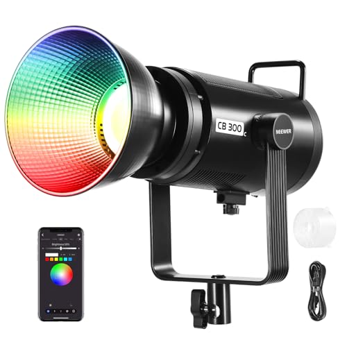 NEEWER - مصباح فيديو ار جي بي ليد طراز CB300C وبقدرة 300 واط مع عاكس مع تقنية (2.4G) و17 إضاءة وشدة 29600 لوكس/1 م ودرجة حرارة ألوان 2500-7500 كلفن ومؤشر +CRI97 و+TLCI97 وإضاءة COB قابلة للتعتيم من نيوير