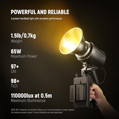 - 【مروحة تبريد مدمجة وصامتة】تزن 1.5 باوند (700 غرام) وقياس 5.9 انش × 3.7 انش × 3.6 انش (150 × 95 × 92 ملم)، MS60B قابلة للحمل للتصوير في الهواء الطلق والاستوديو. مقبض قابل للإزالة بزاوية 180 درجة. تنتج طاقة الخرج العالية 65 واط أقصى إضاءة تصل إلى 40000 لوكس/1 متر، 110000 لوكس عند 0.5 متر. تعمل المروحة الصامتة المدمجة مع نظام تبديد الحرارة الممتاز على إطالة عمر الضوء ولا تصدر أي ضوضاء