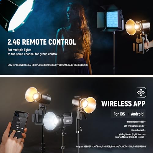 - 【تطبيق انفينيتي وتحكم لاسلكي في الإضاءة 2.4 جيجاهرتز】 تحكم في MS60B بثلاث طرق. استخدم مقابض التحكم والأزرار للتعديل المباشر. تتيح لك تقنية Infinity الجديدة التحكم في مئات الأضواء وترقية البرامج الثابتة OTA عبر تطبيق نيوير يدعم نظام 2.4 جيجا المدمج التحكم الجماعي في مصابيح LED من موديلات مختلفة في 00-99 قناة ضمن 49 قدم (15 مترًا) - عند ضبط العديد من المصابيح في نفس القناة، يمكن أن يؤدي التحكم في ضوء واحد إلى تغيير المصابيح الأخرى في نفس الوقت