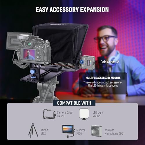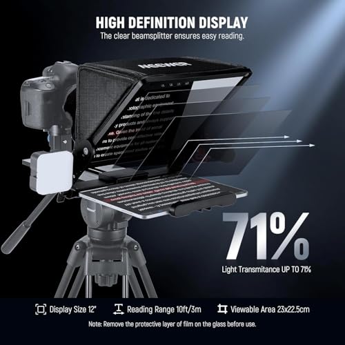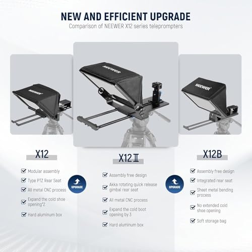 - 【جهاز تلقين بدون تجميع】 مصمم لرفع إنتاج الفيديو والبث المباشر ومدونات الفيديو، X12 II هو جهاز تلقين الكل في واحد لا يتطلب تجميعًا. من خلال التخلص من الحاجة إلى حفظ النص، يساعدك على قراءة كل كلمة بشكل طبيعي والتصرف بثقة أمام الكاميرا. تتضمن حافظة من الألومنيوم الصلب لتخزين ونقل جهاز التلقين لكاميرا دي اس ال ار