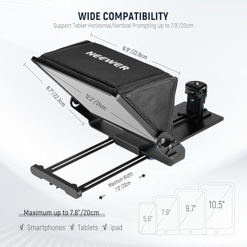NEEWER - نيوير جهاز تلقين مع حامل كاميرا من نوع اركا، كولد شوز، جهاز تحكم عن بعد RT113 لتطبيق نيوير Teleprompter، للتدريس عبر الانترنت/مدوّن الفيديو/البث المباشر للايباد والتابلت، بدون تجميع، X12II