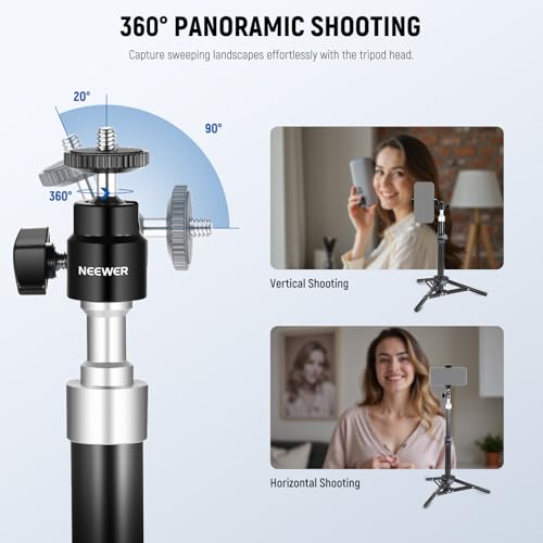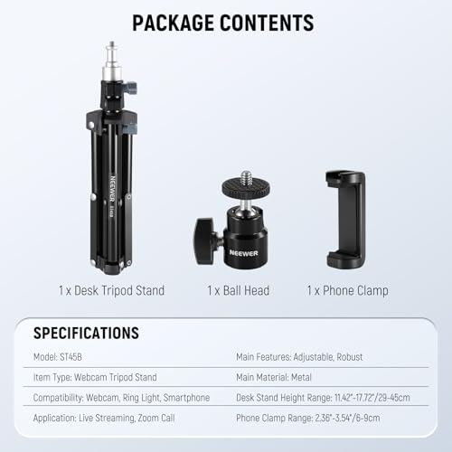 NEEWER - حامل كاميرا ثلاثي القوائم للمكتب، مع حامل للموبايل المحمول، متوافق مع آيفون، لوجيتك، أنكر، إيميت، وحلقة ضوء للتصوير، مناسب لتسجيل الفيديو والبث المباشر ومكالمات زووم، الطراز ST45B من نيوير