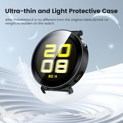 - حماية تامة: تصميم 2 في 1 للطبقة الواقية والجراب، الغطاء مصنوع من مادة البولي كربونات الممتازة، وهي مقاومة للغبار والسقوط والخدوش؛ تحمي شاشة الحماية المدمجة المصنوعة من الزجاج المقوى شاشة ساعة هواوي الخاصة بك وحوافها بالكامل من الخدوش والصدمات والسقوط العرضي دون إضافة أي حجم؛ الهيكل رقيق وخفيف الوزن، مما يجعله مريحًا في الارتداء