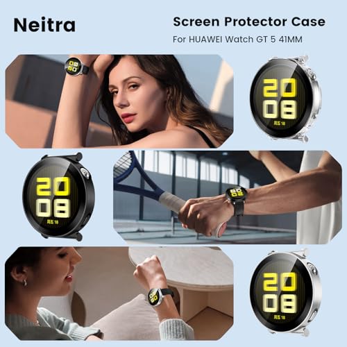 Neitra - شاشة حماية لساعة هواوي GT5 41 ملم من نيترا، غطاء صلب من البولي كربونات ممتص للصدمات مدمج من الزجاج المقوى، غطاء حماية كامل مقاوم للخدش لساعة هواوي [عبوة من قطعتين]