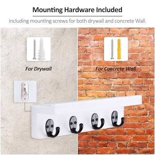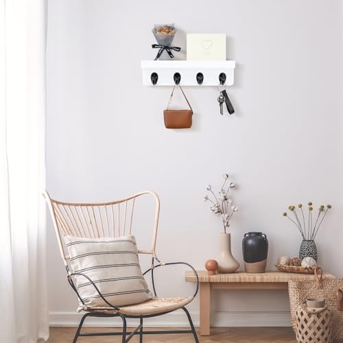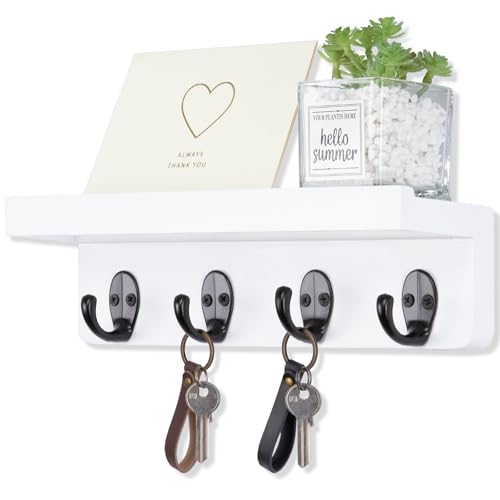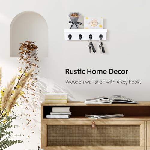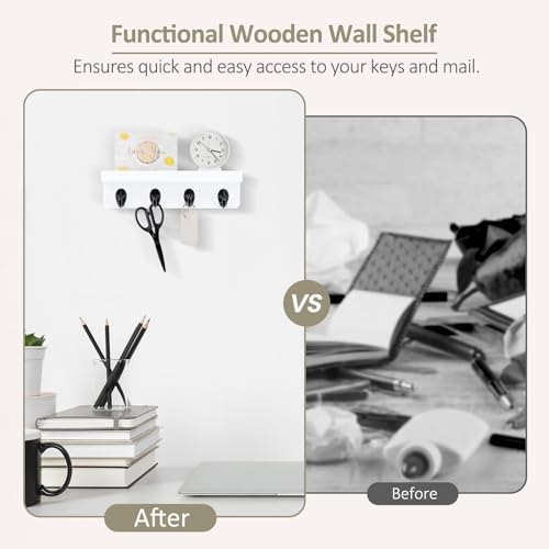 Nekon - حامل مفاتيح لتنظيم الحائط، منظم مفاتيح وبريد خشبي للمداخل والممرات والمطابخ والمزرعة، حامل قابل للتثبيت على الحائط (أبيض، 24.89 سم) من نيكون