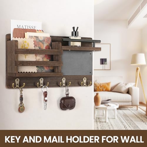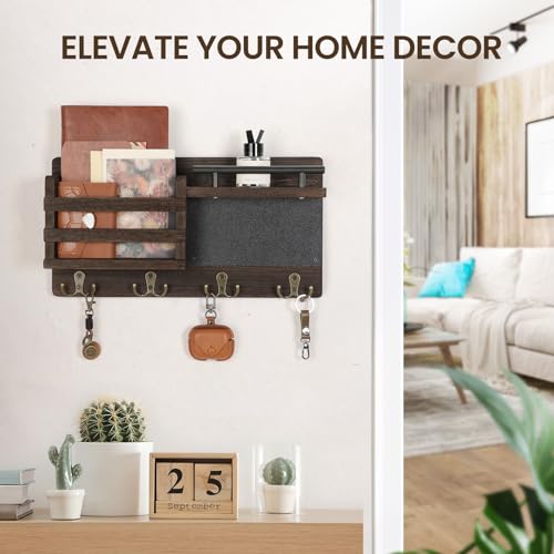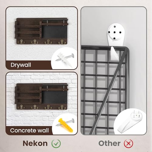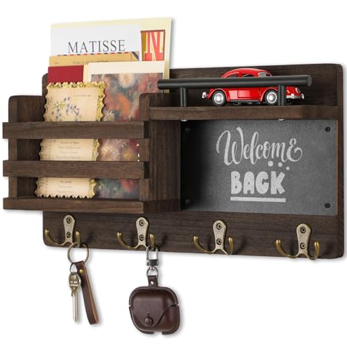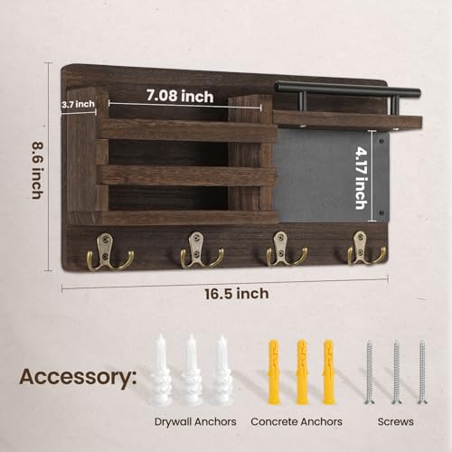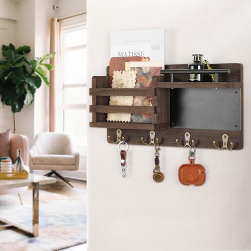 Nekon - نيكون منظم بريد للحائط مع سبورة طباشير حامل مفاتيح مزخرف وحامل على الحائط رف للمدخل وغرفة النوم بني خشب