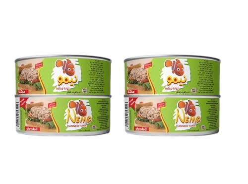 - محتوى العبوة: 4 علب من التونة المفتتة نيمو، كل علبة تحتوي على 140 جرام من التونة عالية الجودة