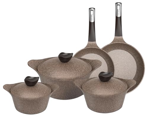 Neoflam - طقم أواني طهي ايني من نيوفلام مع هدية، مجموعة أدوات من 2 قطعة، بني بنمط رخامي، 10 قطع