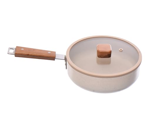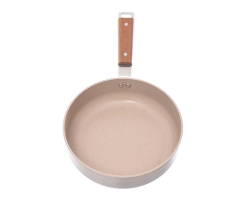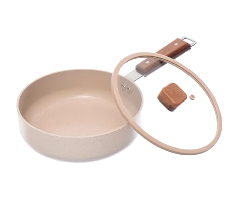 Neoflam - مقلاة نيوفلام EK-BG-W20 ذات غطاء زجاجي، مقاس 24 سم، لون رخامي باللون البيج الكريمي