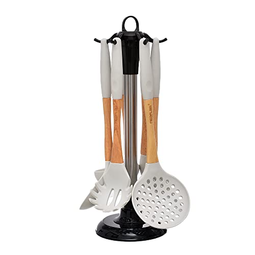 Neoflam - مجموعة أدوات مطبخ فاخرة مع حامل بلاستيك عالي الجودة قابل للدوران من نيوفلام - متعدد الألوان