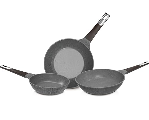 Neoflam - طقم أواني طهي تيلي 3 قطع من نيوفلام، رمادي رخامي، ألومنيوم