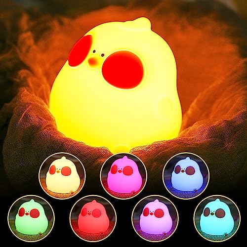 Neoglint - مصباح ليلي بتصميم دجاجة لطيفة من نيوجلينت، مصباح بجانب السرير من السيليكون، مصباح لغرفة الأطفال، ضوء ليلي متغير اللون ار جي بي