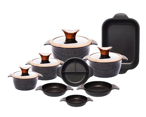 NeoKlein - طقم حلل طهي دائرية اكسفورد من نيوكلاين، 13 قطعة، أسود، سيراميك