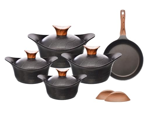 NeoKlein - طقم حلل دائرية مع طاسة قلي من نيوكلاين، لون أسود - 5 قطع، موديل 946