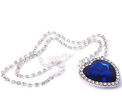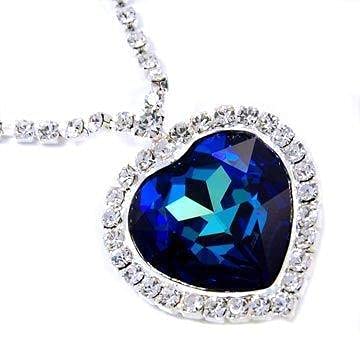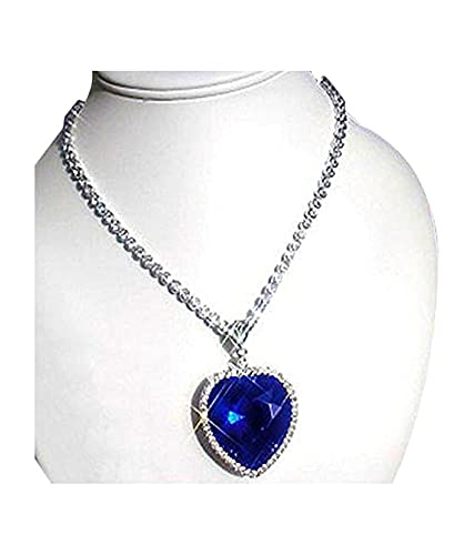 NEOGLORY - قلادة Neoglory - قلب أزرق من الزجاج المصقول - المعدن من الزنك المسبوك - سلسال متين مليء بالألماس، للنساء