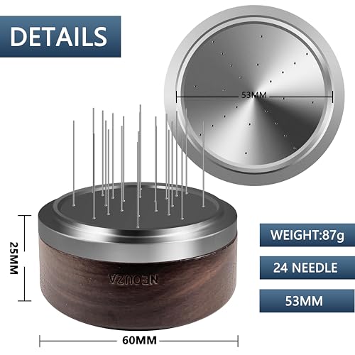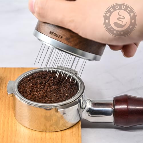 NEOUZA - أداة تحريك إسبريسو دوارة دبليو دي تي مع غطاء من نيوزا، 24 سنًا، 3 أطوال قابلة للقص، موزع توزيع، ملحقات لمرشحات ماكينة القهوة (53 ملم)