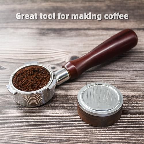 - ☕ 【مواد ممتازة】أداة تقليب قهوة الاسبريسو هذه مصنوعة من 24 قطعة من إبر الستانلس ستيل 304 مقاس 0.4 ملم، ومقبض وغطاء من خشب الجوز.