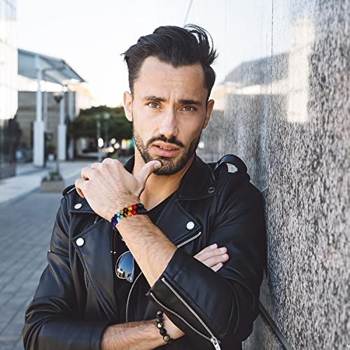 Generic - سوار خرز للرجال والنساء 8 ملم للازواج قابل للتعديل الصداقة لليوجا والتامل كريستال للشفاء هدية لصديق صديق مقرب صديقة مقربة اب وام حجر