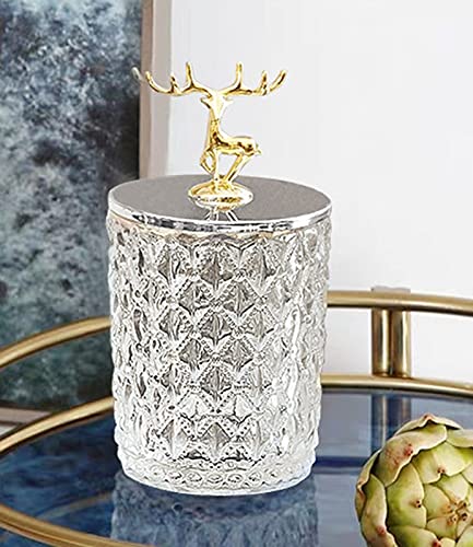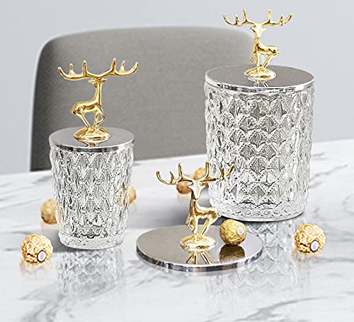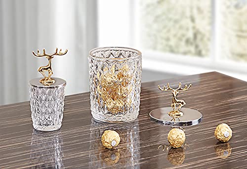 Nerien - وعاء حلوى من نيرين مع غطاء غزالة للبسكويت والوجبات الخفيفة حاوية القصدير طعام لتخزين الطعام منظم شفاف مزخرف للمنزل والبوفيه وحفلات الزفاف زجاج عدد القطع: 1