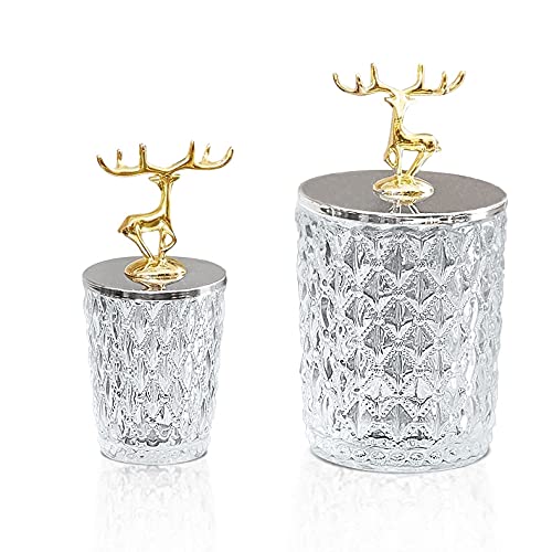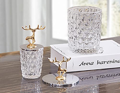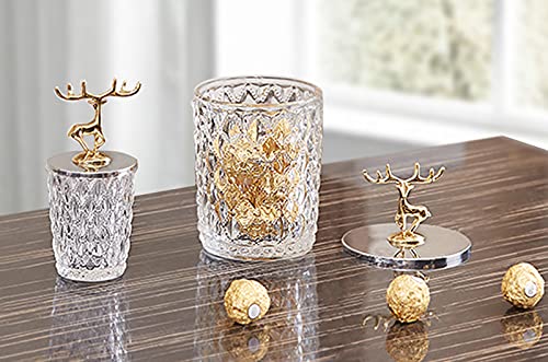 Nerien - وعاء حلوى من نيرين مع غطاء غزالة للبسكويت والوجبات الخفيفة حاوية القصدير طعام لتخزين الطعام منظم شفاف مزخرف للمنزل والبوفيه وحفلات الزفاف، مقاس S، زجاج، عدد القطع: 1