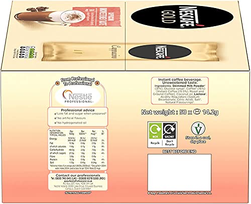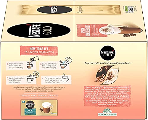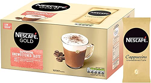 Cappuccino - قهوة نسكافيه جولد كابتشينو غير محلى 50 كوب سريعة التحضير منخفضة السكر فورية